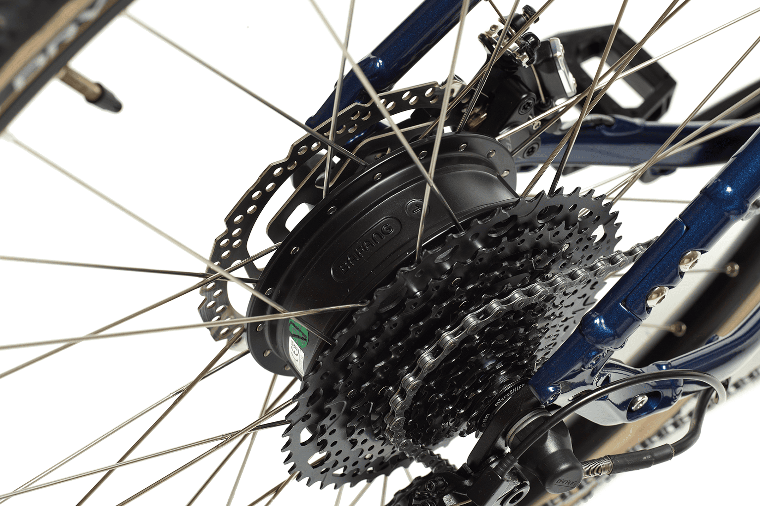 Llega más lejos con menos esfuerzo y disfruta del placer de pedalear gracias al motor de buje trasero BAFANG de 45Nm, que te proporciona una respuesta inmediata mientras pedaleas.